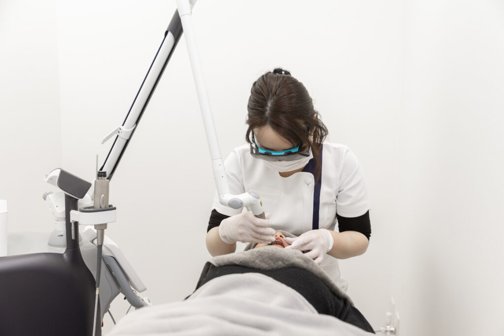 切らない治療: 粘膜を蒸散・収縮させることで引き締めるため、出血がほとんどありません。